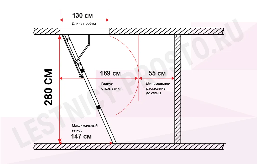 Высота лестницы до 2800 мм