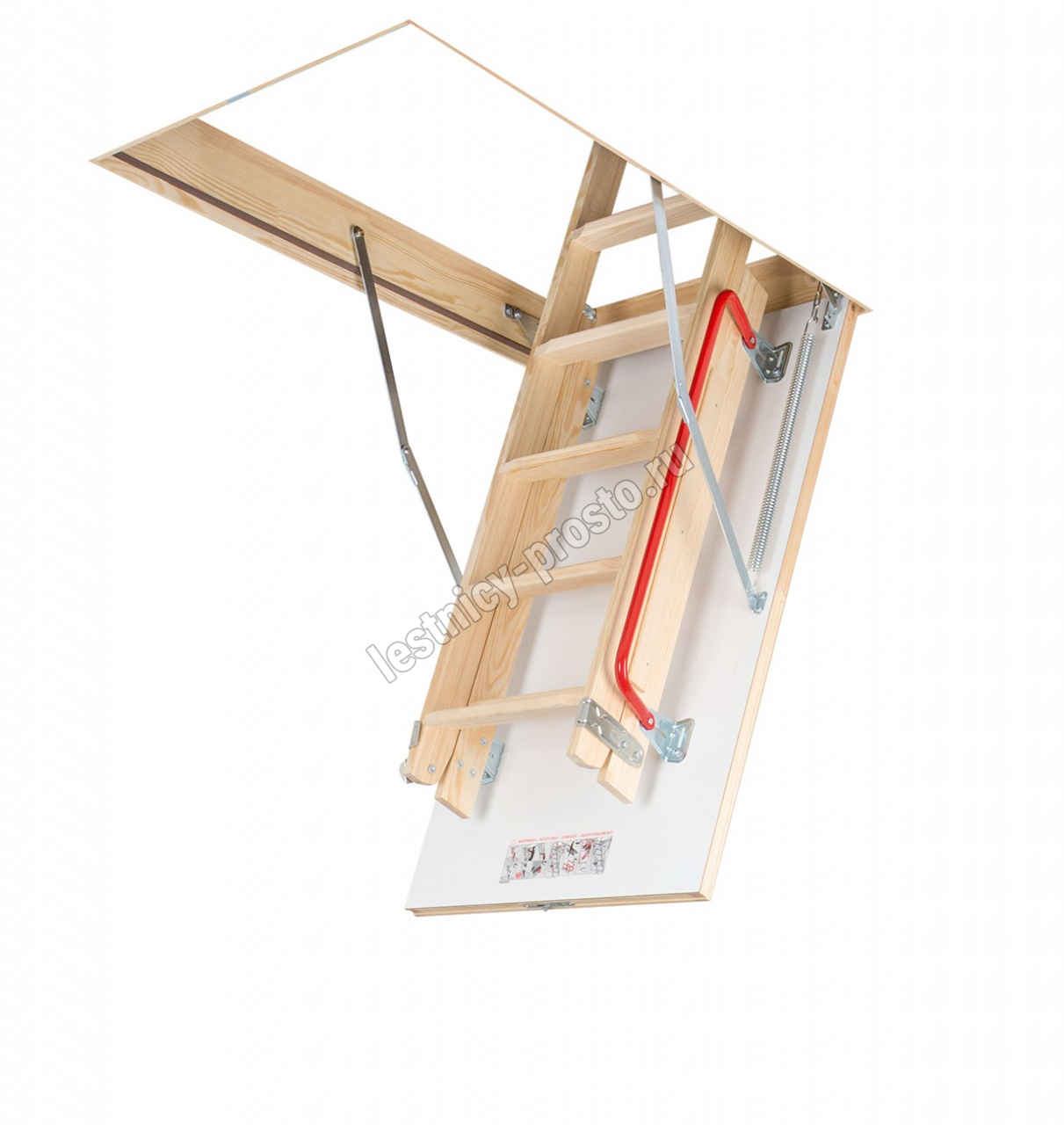 Двухсекционная раздвижная чердачная лестница LDK предназначена для помещений, где недостаточно места для складных лестниц. Данная модель также хорошо сохраняет тепло (толщина крышки с утеплителем – 36 мм), проста, удобна и безопасна в использовании, как и лестницы Smart и Komfort, но в тоже время позволяет максимально экономить драгоценное свободное пространство в доме. Крышка люка облицована ДВП белого цвета, что делает ее практически незаметной при установке в светлом или белом потолке. Для большего удобства и безопасности эксплуатации лестница LDK оснащена боковым металлическим поручнем и противоскользящими выемками на ступенях.