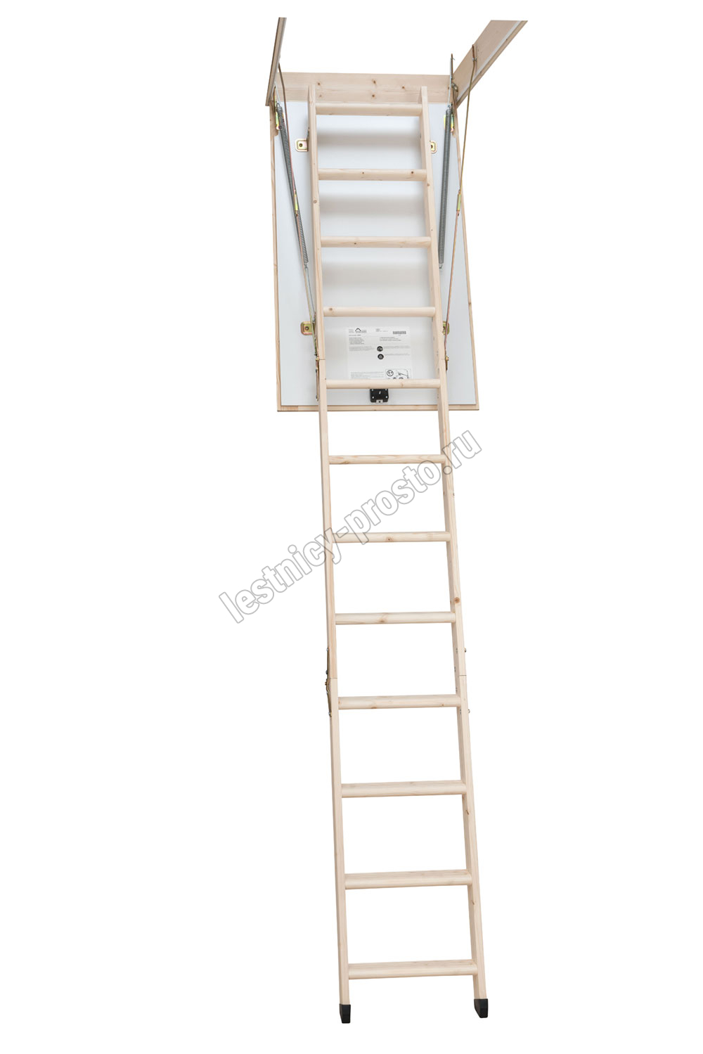 PROF 36 - трехсекционная утепленная лестница из скандинавской медленнорастущей ели, отличающейся повышенной прочностью, ступени из сосны, имеют антискользящие насечки.