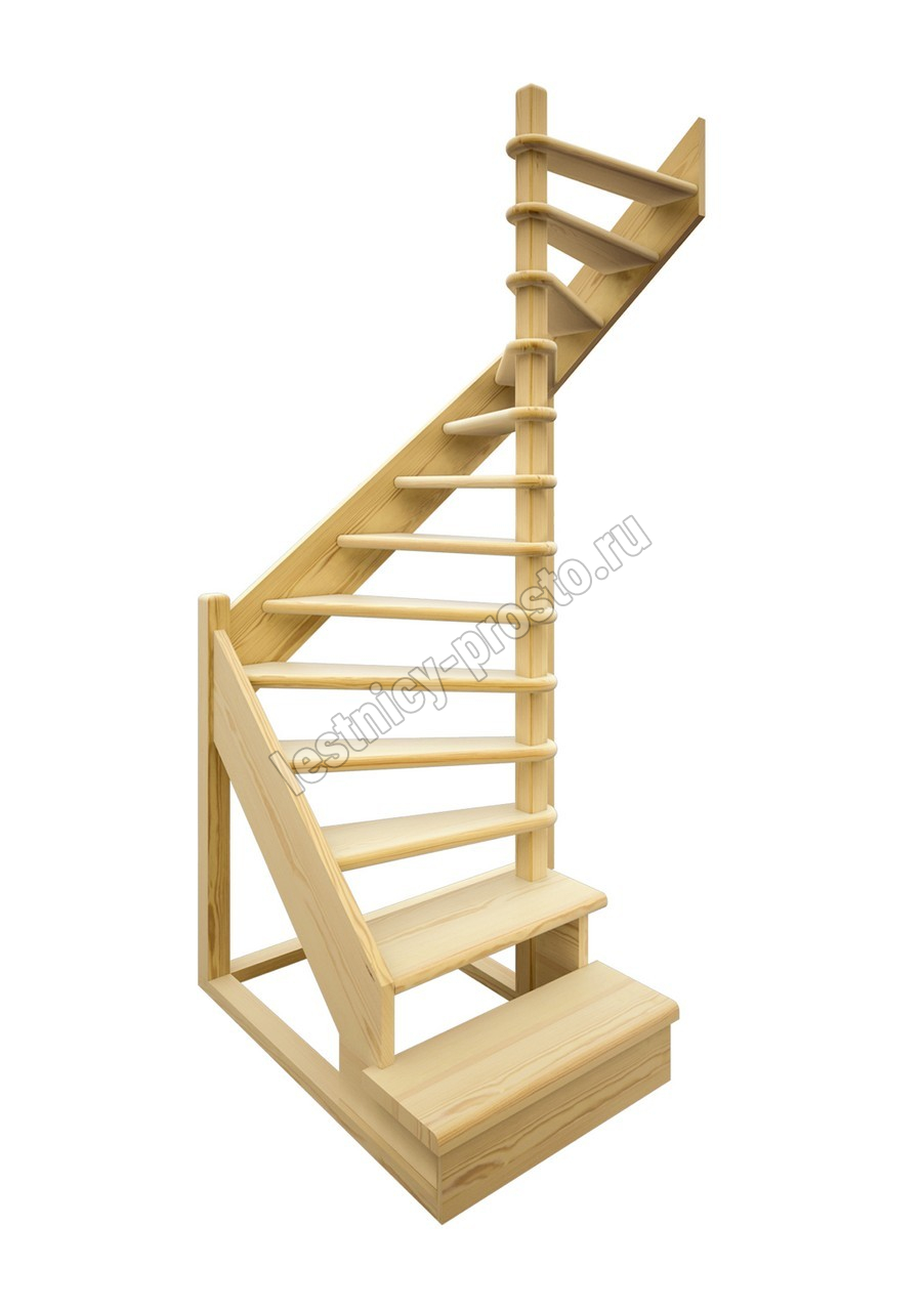 Деревянная межэтажная лестница ЛЕС-01 2525-2720 проем 1640-900, Бук