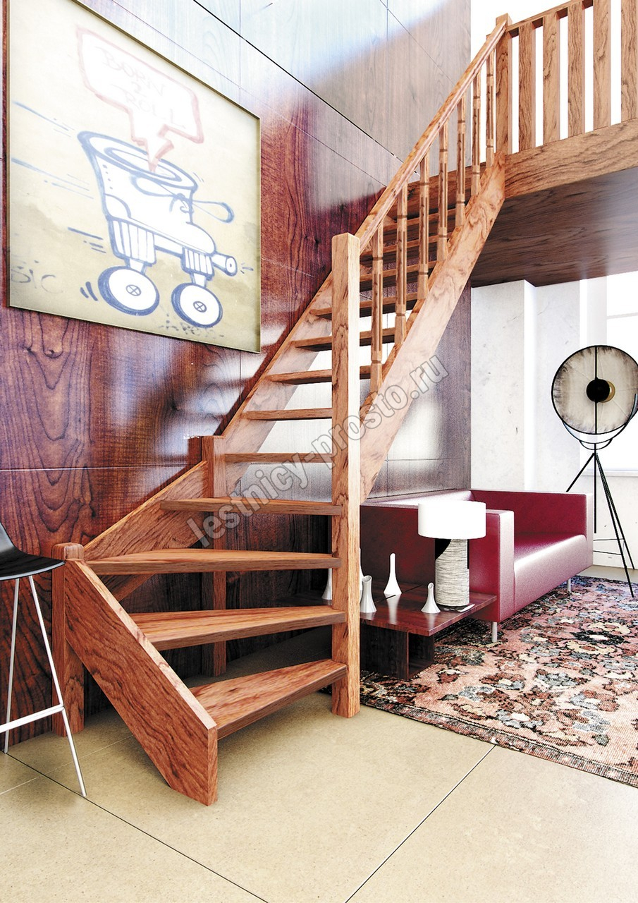 Деревянная межэтажная лестница ЛЕС-07 2880-3085 проем 2550-830, Сосна
