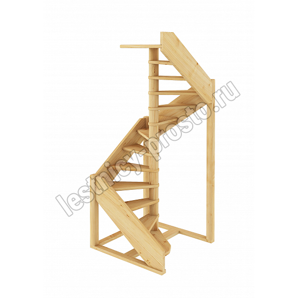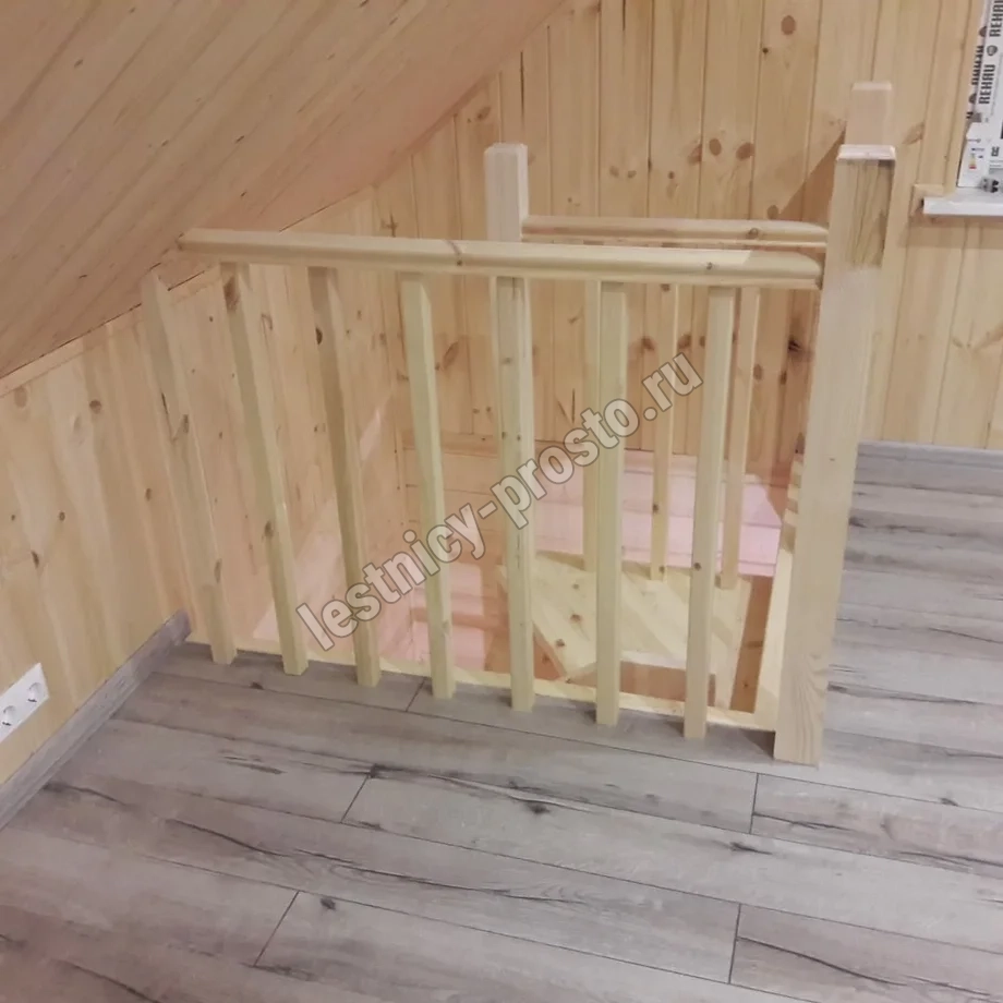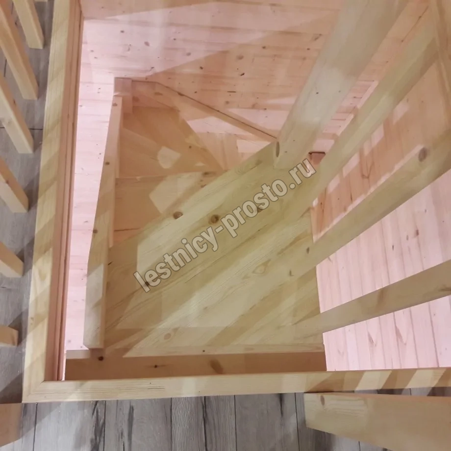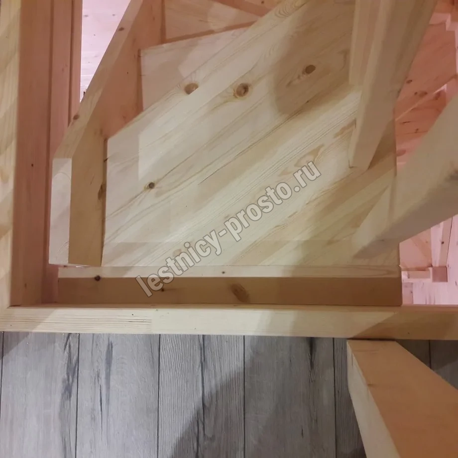 Небольшая аккуратная лестница, хорошо подойдет для помещения с небольшим проемом, поможет сэкономить пространство и организовать комфортный подъем на уровень выше. Возможны варианты лестницы из сосны под покраску, сосны, дуба, бука или ясеня. Для увеличения срока эксплуатации мы рекомендуем покрыть элементы лестницы защитным средством. Вы можете сделать это самостоятельно или заказать предварительное покрытие необходимым средством (или тонирование) в нашем цеху.