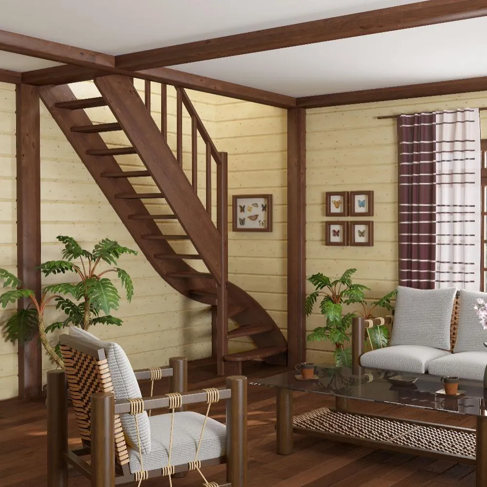 Базовый комплект включает в себя деревянные элементы лестницы с подступёнками и ограждения без какого-либо покрытия.