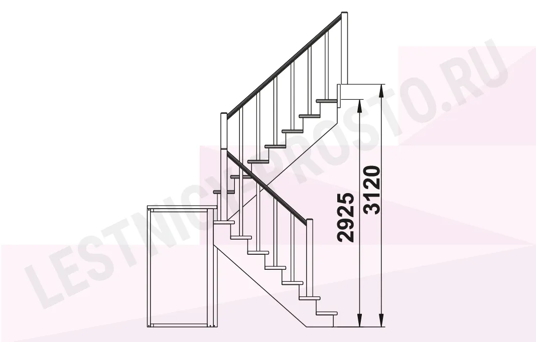Базовый комплект включает в себя деревянные элементы лестницы с подступёнками и ограждение без какого-либо покрытия.