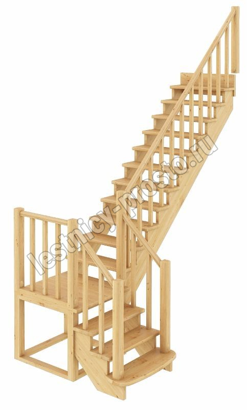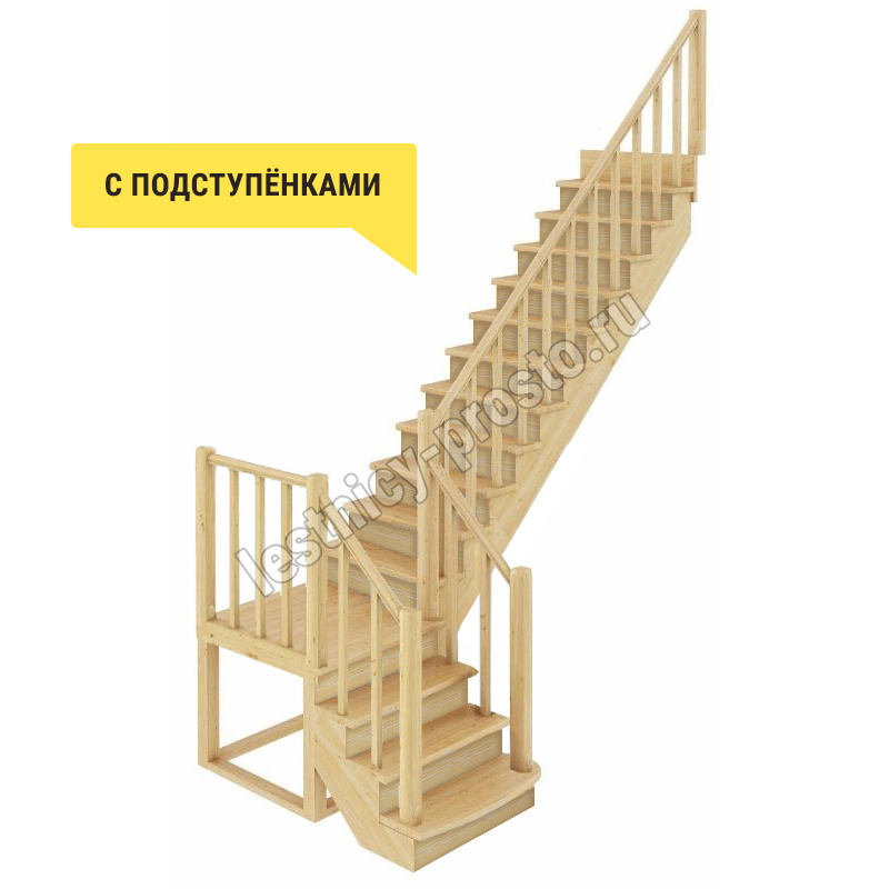 Базовый комплект включает в себя деревянные элементы лестницы с подступёнками и ограждения без какого-либо покрытия.