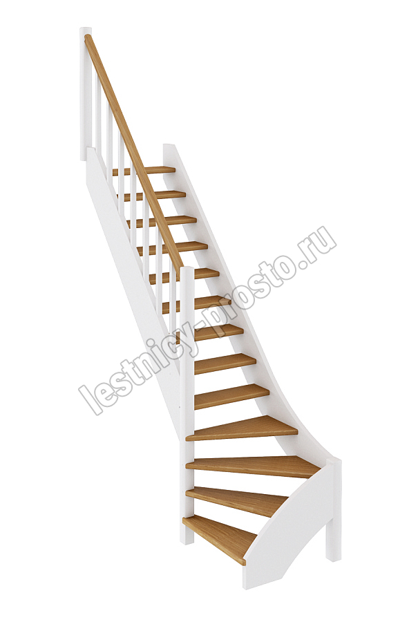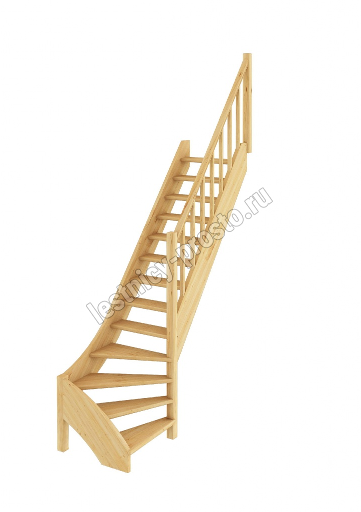Базовый комплект включает в себя деревянные элементы лестницы с подступёнками и ограждения без какого-либо покрытия.