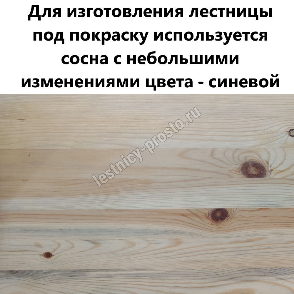 Обратите внимание! Лестница изготовлена из сосны эконом-класса, что выражено в заметных вкраплениях синевы, которая не отражается на прочности лестницы, но может быть видна при покраски в светлые тона или при покрытии прозрачными средствами.