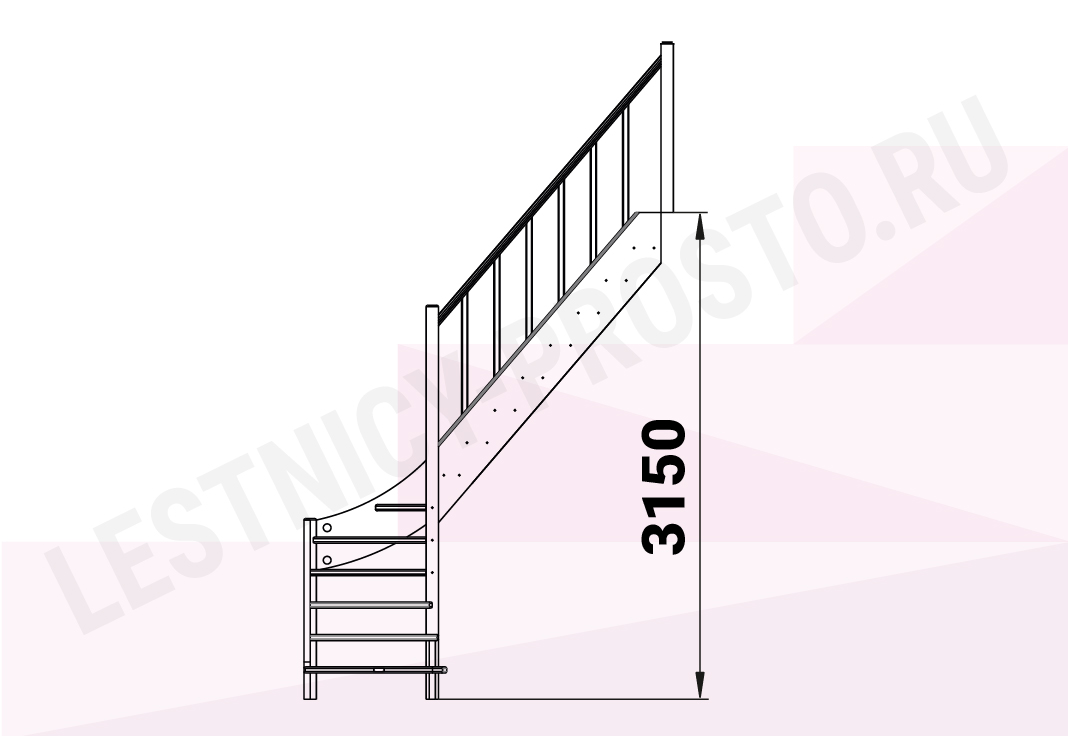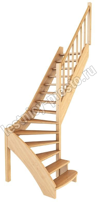 Базовый комплект включает в себя деревянные элементы лестницы с подступенками и ограждения без какого-либо покрытия.