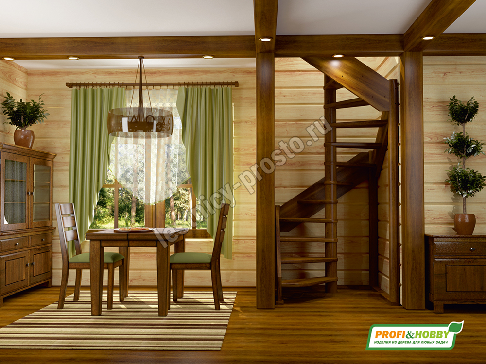 В производстве лестницы ЛС-1.2хм под покраску используется сосна с небольшими изменениями цвета, что практически не влияет на ее механические свойства и почти незаметно при покраске в темные цвета. Базовый комплект включает в себя деревянные элементы лестницы и ограждения без какого-либо покрытия.
