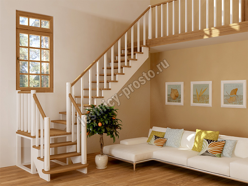 Ступени и поручень лестницы изготовлены из ясеня, остальные элементы из сосны.