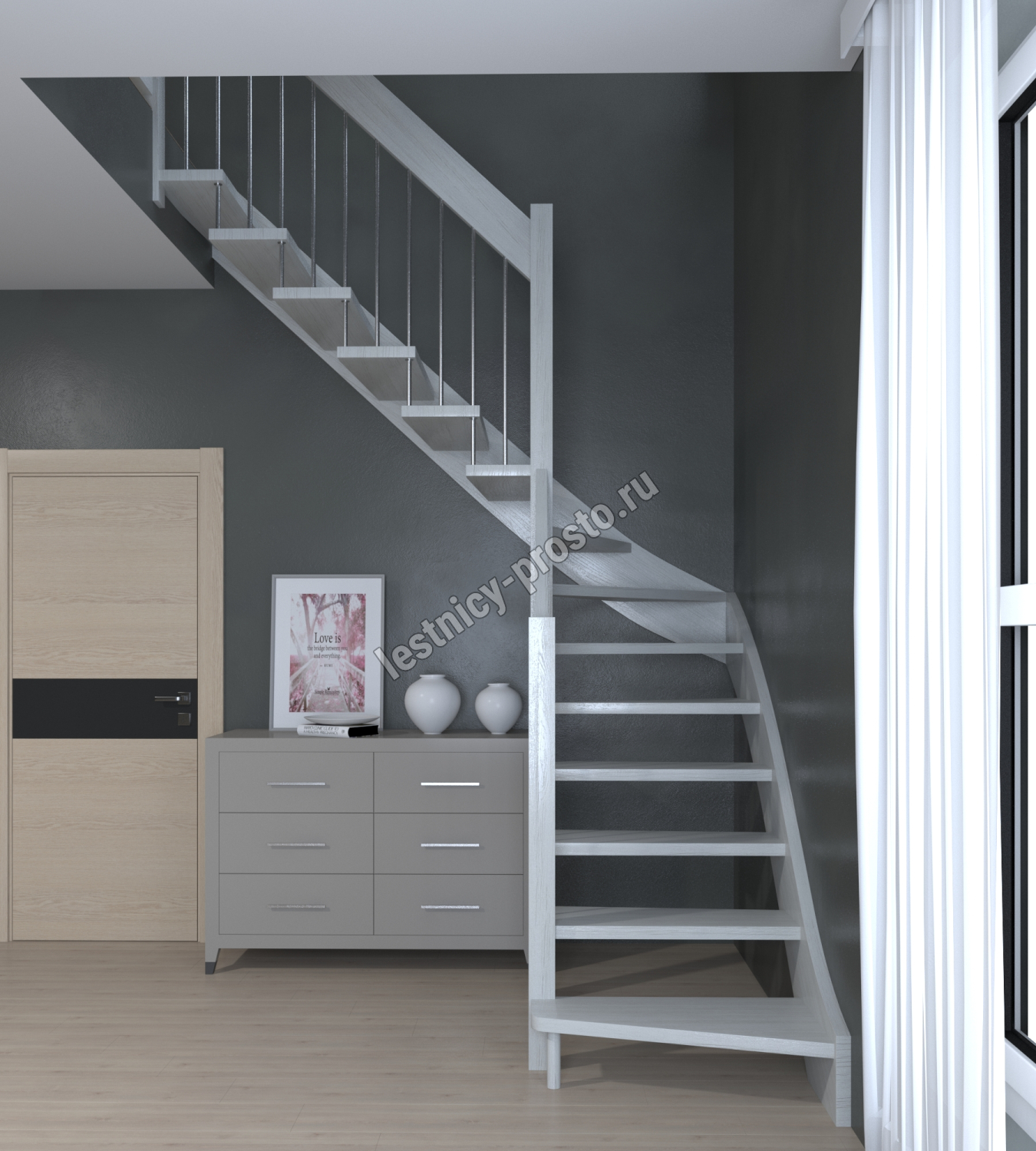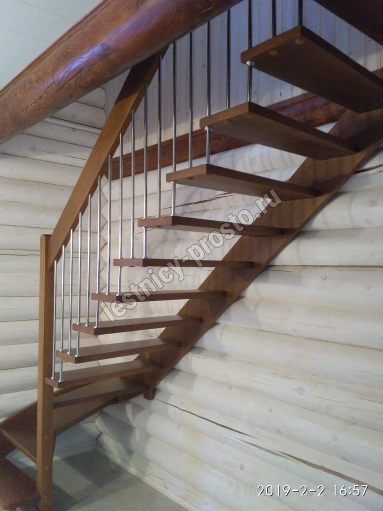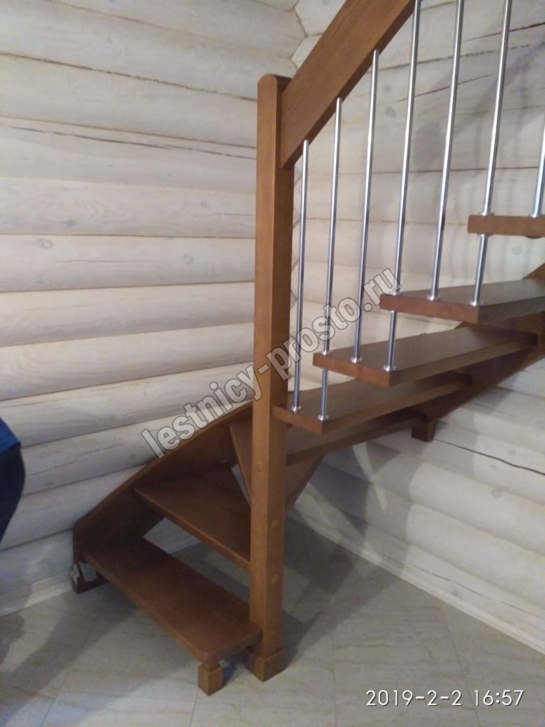 Надёжная современная лестница выполнена по немецкой технологии. Стоимость указана для лестницы с ограждением (с одной стороны); Поставляется в разобранном виде, в комплекте необходимый крепёж; Лестницу можно собрать самостоятельно; Так же, вы можете заказать услугу монтажа нашими специалистами; 4 вида породы дерева для изготовления лестницы: сосна, бук, ясень, дуб; возможна комбинированная лестница: из сосны (ступени бук, ясень, дуб); Деревянные элементы без какого-либо покрытия, отшлифованы, готовы к покраске. За дополнительную плату, вы можете изменить любые параметры, а именно: увеличить глубину ступени; увеличить ширину марша до 900 мм. и выше; заказать подступенки к лестнице; заказать отделку перекрытия (между 1-м и 2-м этажами); изготовить дополнительный промежуточный марш; заказать ограждение 2-го этажа; покраска в любой цвет или несколько цветов или покрытие защитными средствами; дополнение балясины из нержавеющей стали деревянными элементами; покраска балясин из нержавеющей стали порошковой краской в цвет RAL.
