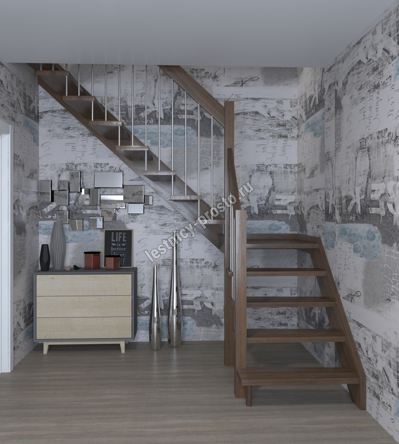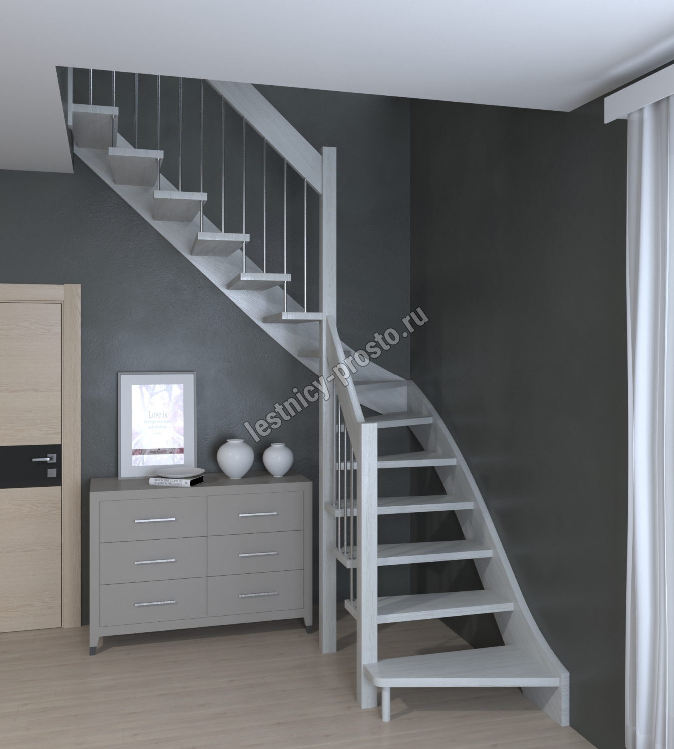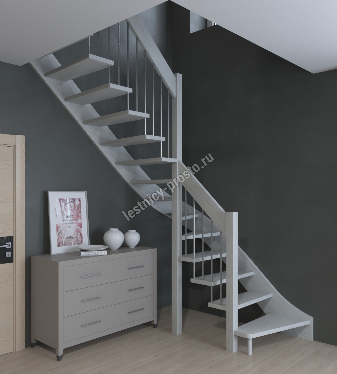 Надёжная современная лестница выполнена по немецкой технологии. Стоимость указана для лестницы с ограждением (с одной стороны); Поставляется в разобранном виде, в комплекте необходимый крепёж; Лестницу можно собрать самостоятельно; Так же, вы можете заказать услугу монтажа нашими специалистами; 4 вида породы дерева для изготовления лестницы: сосна, бук, ясень, дуб; возможна комбинированная лестница: из сосны (ступени бук, ясень, дуб); Деревянные элементы без какого-либо покрытия, отшлифованы, готовы к покраске. За дополнительную плату, вы можете изменить любые параметры, а именно: увеличить глубину ступени; увеличить ширину марша до 900 мм. и выше; заказать подступенки к лестнице; заказать отделку перекрытия (между 1-м и 2-м этажами); изготовить дополнительный промежуточный марш; заказать ограждение 2-го этажа; покраска в любой цвет или несколько цветов или покрытие защитными средствами; дополнение балясины из нержавеющей стали деревянными элементами; покраска балясин из нержавеющей стали порошковой краской в цвет RAL.