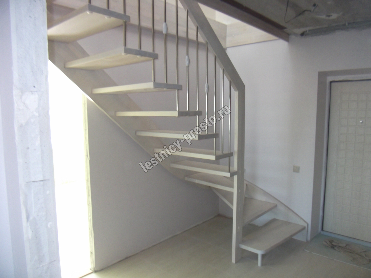 Надёжная современная лестница выполнена по немецкой технологии. Стоимость указана для лестницы с ограждением (с одной стороны); Поставляется в разобранном виде, в комплекте необходимый крепёж; Лестницу можно собрать самостоятельно; Так же, вы можете заказать услугу монтажа нашими специалистами; 4 вида породы дерева для изготовления лестницы: сосна, бук, ясень, дуб; возможна комбинированная лестница: из сосны (ступени бук, ясень, дуб); Деревянные элементы без какого-либо покрытия, отшлифованы, готовы к покраске. За дополнительную плату, вы можете изменить любые параметры, а именно: увеличить глубину ступени; увеличить ширину марша до 900 мм. и выше; заказать подступенки к лестнице; заказать отделку перекрытия (между 1-м и 2-м этажами); изготовить дополнительный промежуточный марш; заказать ограждение 2-го этажа; покраска в любой цвет или несколько цветов или покрытие защитными средствами; дополнение балясины из нержавеющей стали деревянными элементами; покраска балясин из нержавеющей стали порошковой краской в цвет RAL.