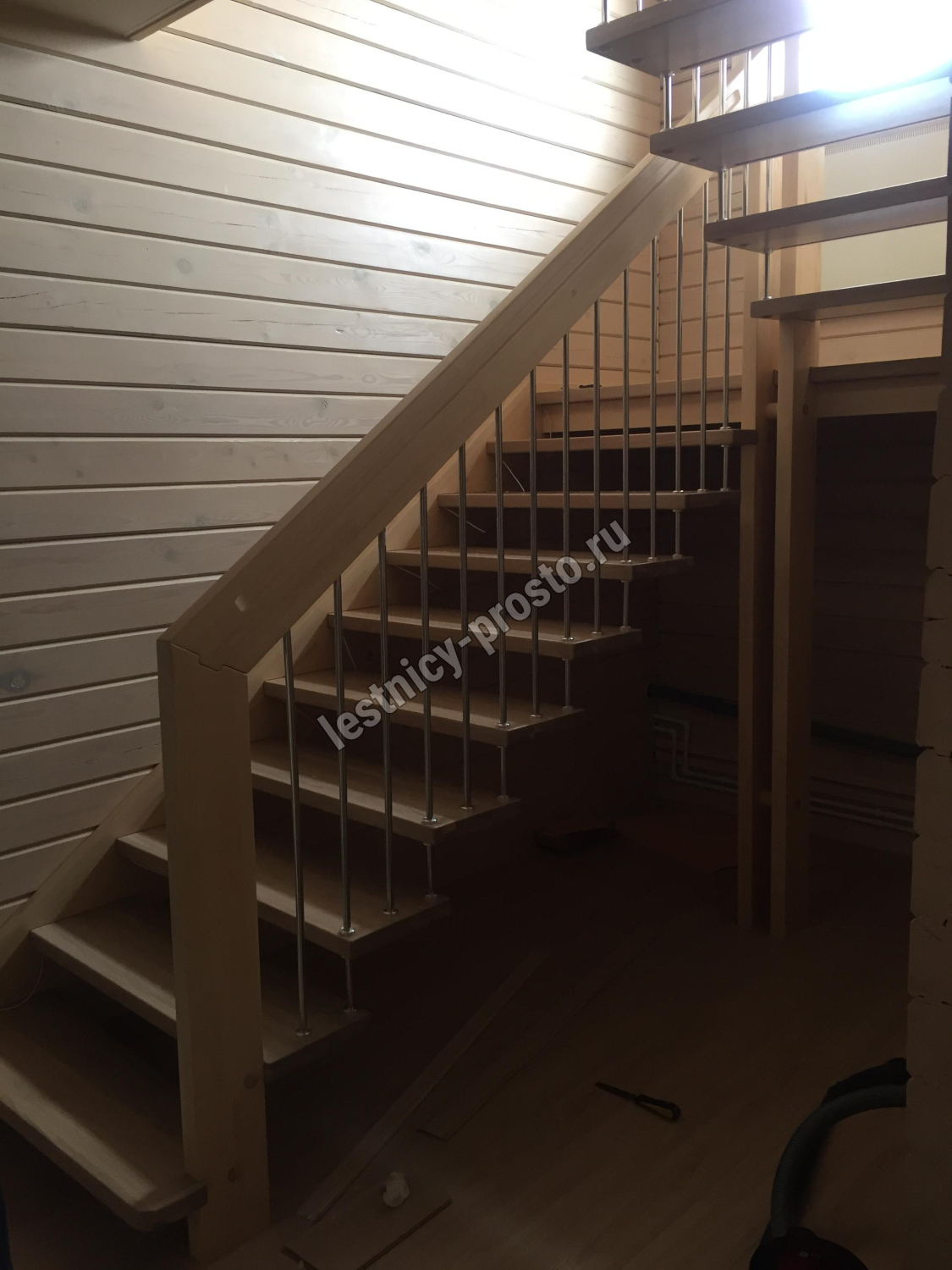 Элегантная современная лестница из сосны.