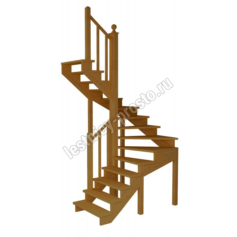 Лестница изготавливается под заказ. Возможны варианты подходящие под необходимые размеры проёма. Базовое ограждение можно заменить на кованое или точеное. Лестницу можно дополнить подступенями, бортиками, миниподступенями. Первую ступень можно заменить на пригласительную - лекальную. Классическая модель поворотной лестницы раскрывает всю природную красоту натуральных материалов. У лестницы комфортная высота шага, удобный широкий марш и угол подъема. Указана стоимость лестницы без какого-либо покрытия.
