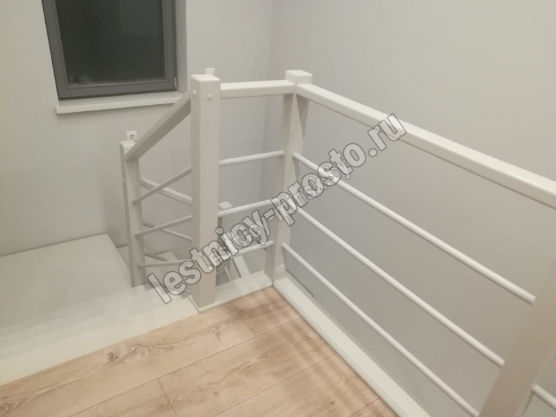 В комплекте: 3 прямых деревянных столба без какого-либо покрытия и профильный поручень без покрытия, комплект из 3 ригелей из стали (окрашены в цвет каркаса или хром по желанию) диаметром 12 мм. , необходимая фурнитура.