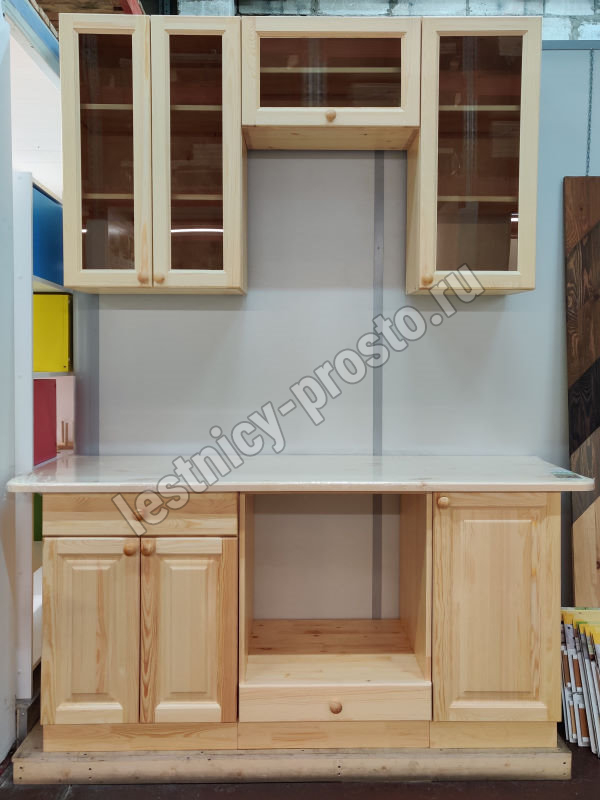 Кухня 1.6 х 2.32 м, массив сосны, бесцветный акриловый лак