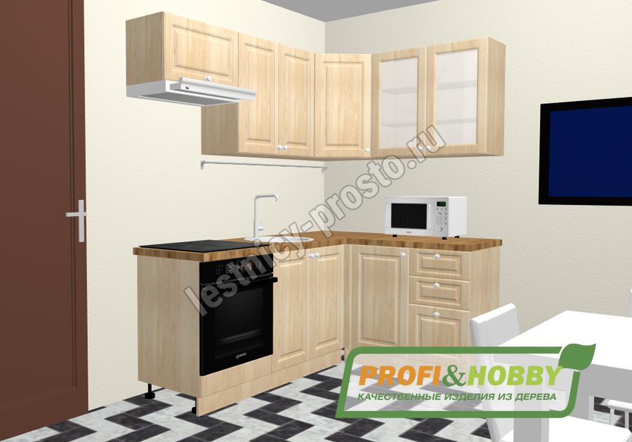 Кухня 2 х 1.4 х 2.14 м, массив сосны, бесцветный акриловый лак