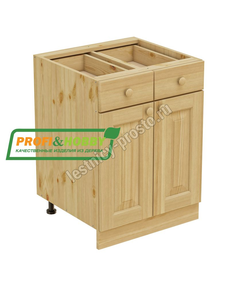 Тумба 2 двери, 2 ящика 600 х 560 х 720 сосна, без покраски
