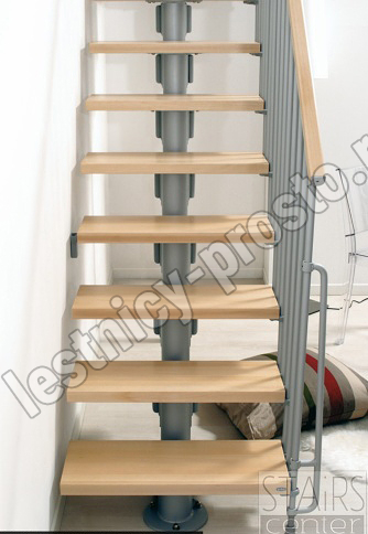 При монтаже этой лестницы, возможно регулировать высоту и глубину шага, таким образом можно получить лестницу под высоты этажа в диапазоне 2250 - 3030 мм, кроме того, установив дополнительный комплект увеличения высоты, можно поднять высоту лестницы до 3730 мм. Ширина проступи регулируется при монтаже в пределах 180 - 220 мм. Каркас и стойки ограждения выполнены из пластифицированного металла.