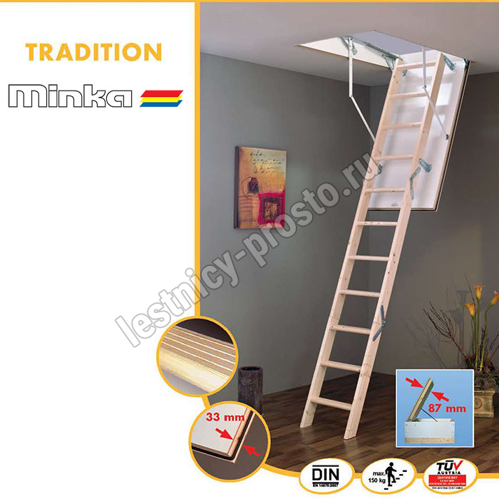 Чердачная складная лестница MINKA TRADITION 60×110 см, h-280 см