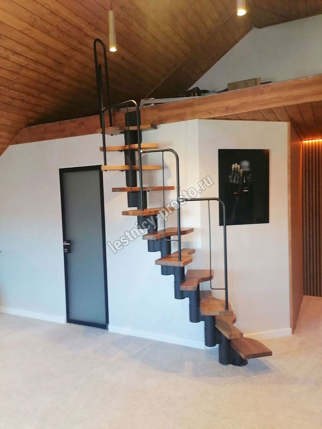 Лестница Prosto Urban Black гусиный шаг 700 мм, h180-264 см (10 ступеней), дуб