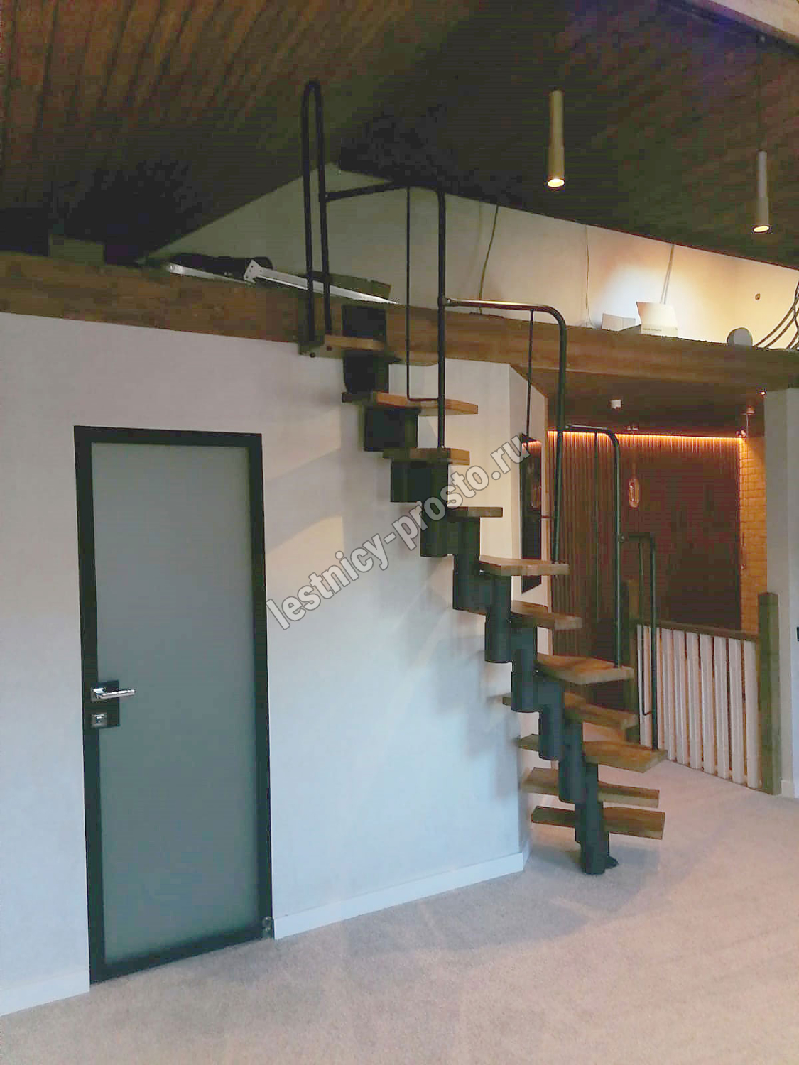 Лестница Prosto Urban Black гусиный шаг 700 мм, h234-336 см (13 ступеней), дуб