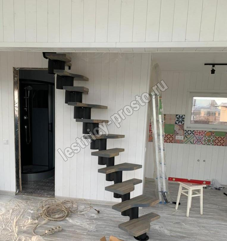 | Лестница Prosto Urban Black гусиный шаг 700 мм, h234-336 см (13 ступеней), бук |