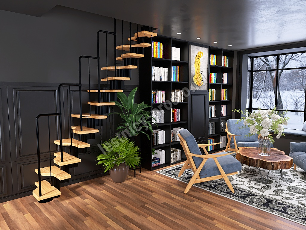 | Лестница Prosto Urban Black гусиный шаг 700 мм, h198-288 см (11 ступеней), бук |