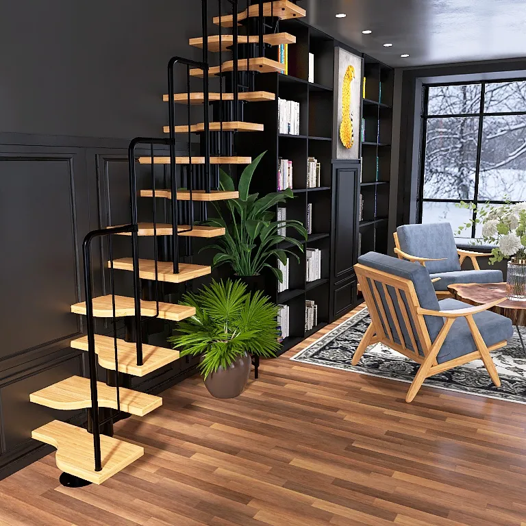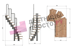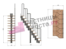 Лестница Prosto Urban Black гусиный шаг 600 мм, h198-288 см (11 ступеней), бук