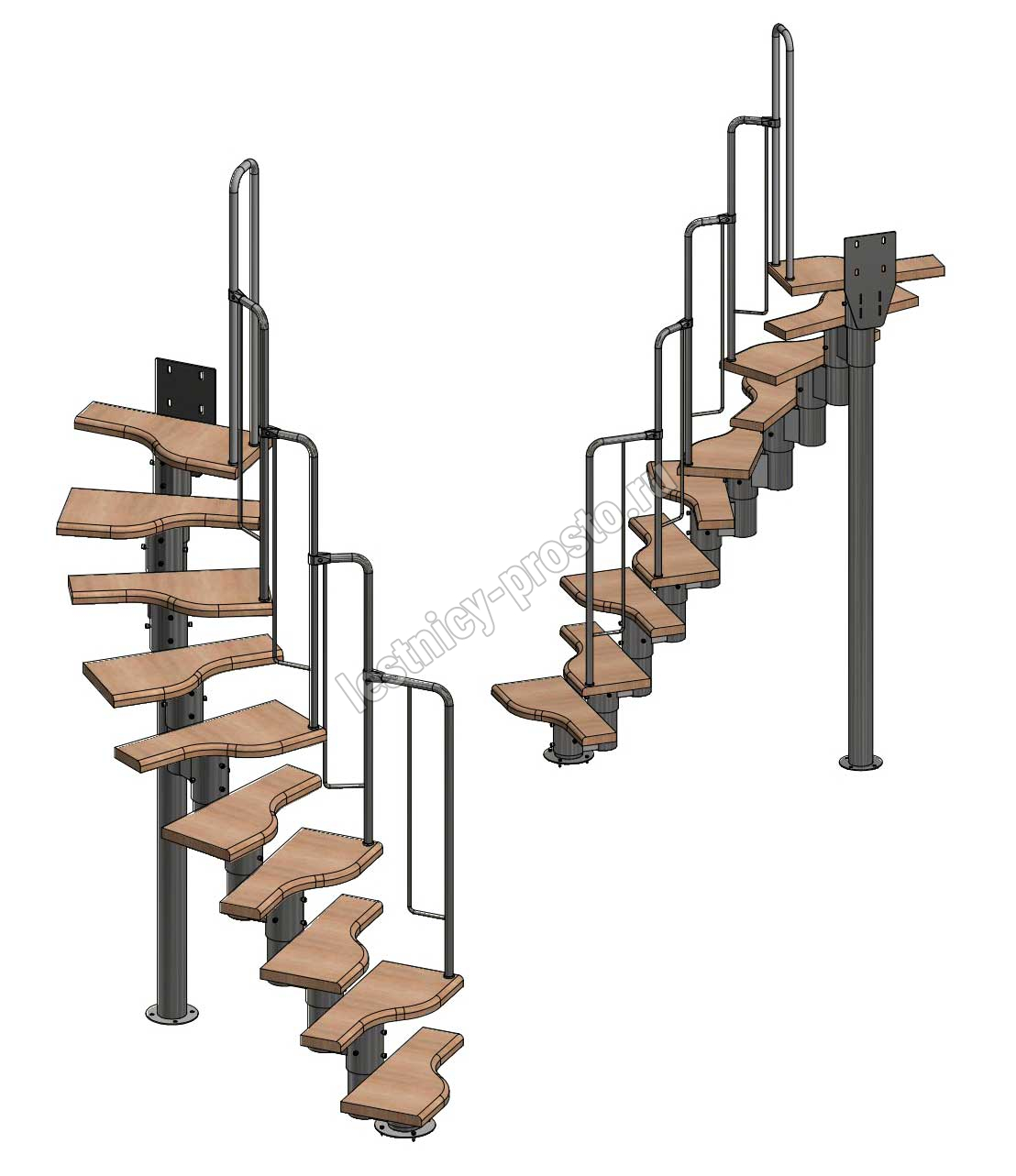 Лестница Prosto Urban White гусиный шаг 600 мм, h180-264 см (10 ступеней), бук