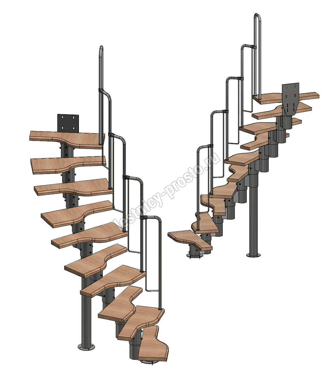 - Регулируемый по высоте в пределах 180-240 мм модуль. Большой диаметр и толщина металла деталей обеспечивают жесткость и прочность конструкции. Регулировка каждого модуля по высоте позволяет легко приспособить лестницу под ваше помещение.