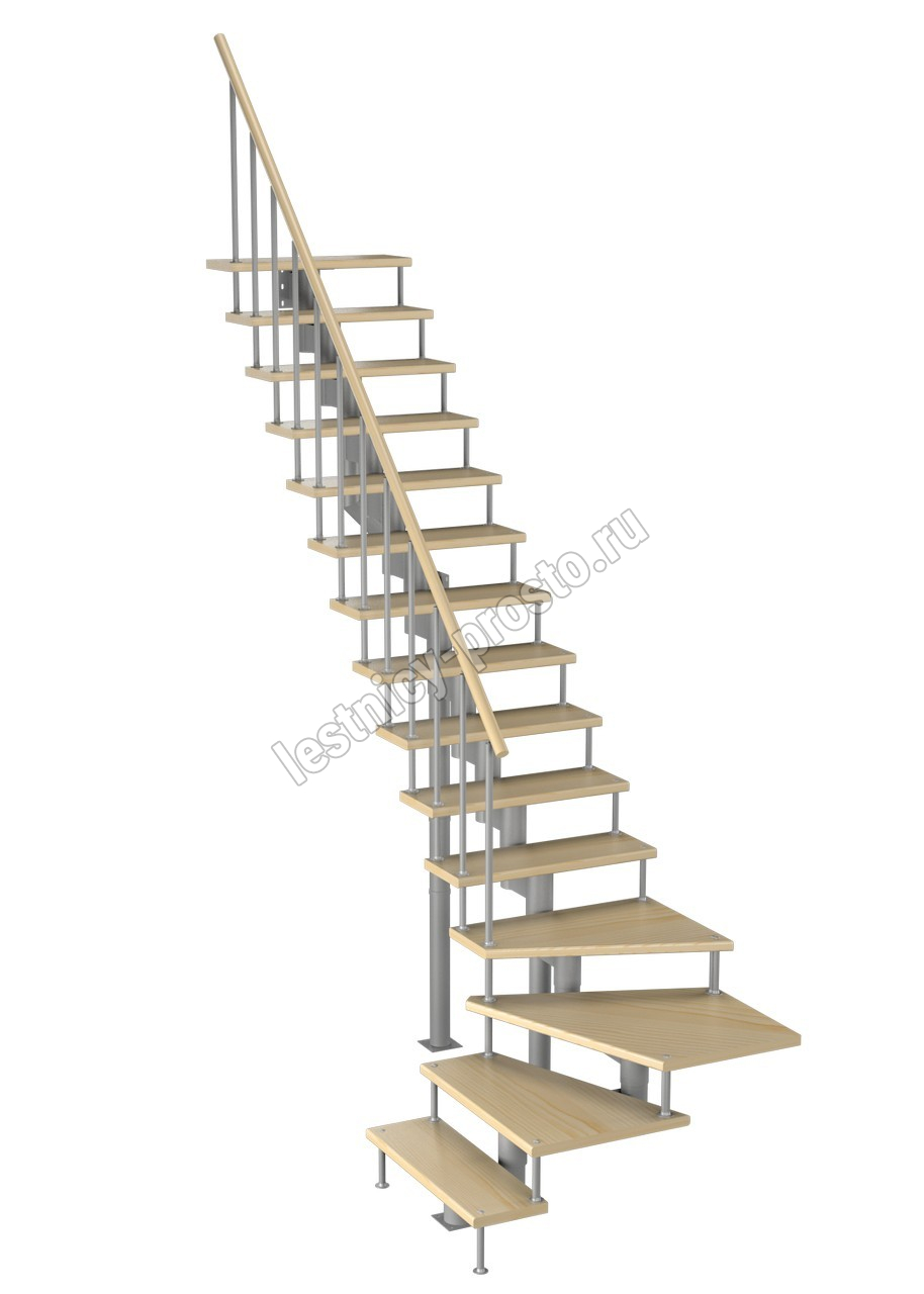 Модульная лестница Фаворит 180 2700-2850, Серый, Сосна, Нержавеющая сталь