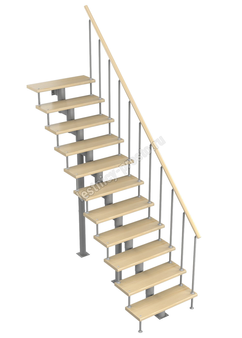 Модульная лестница Стандарт 2475-2585, Серый, Сосна, Крашеная