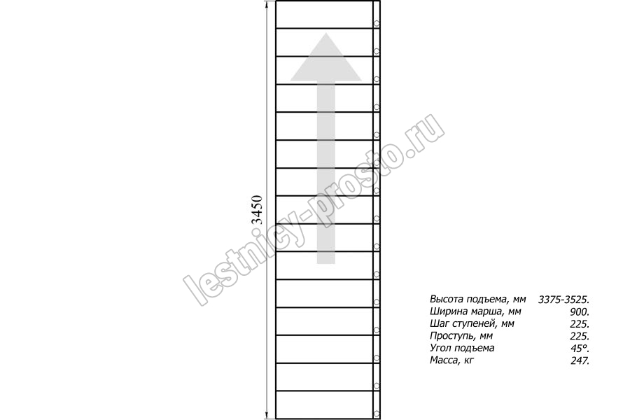 Модульная лестница Стандарт 3375-3525, Черный, Сосна, Нержавеющая сталь