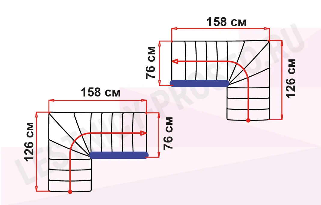 Форма лестницы Г-образная