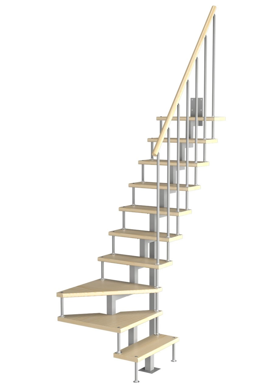 Модульная малогабаритная лестница Компакт 2250-2475, Белый, Бук, Нержавеющая сталь