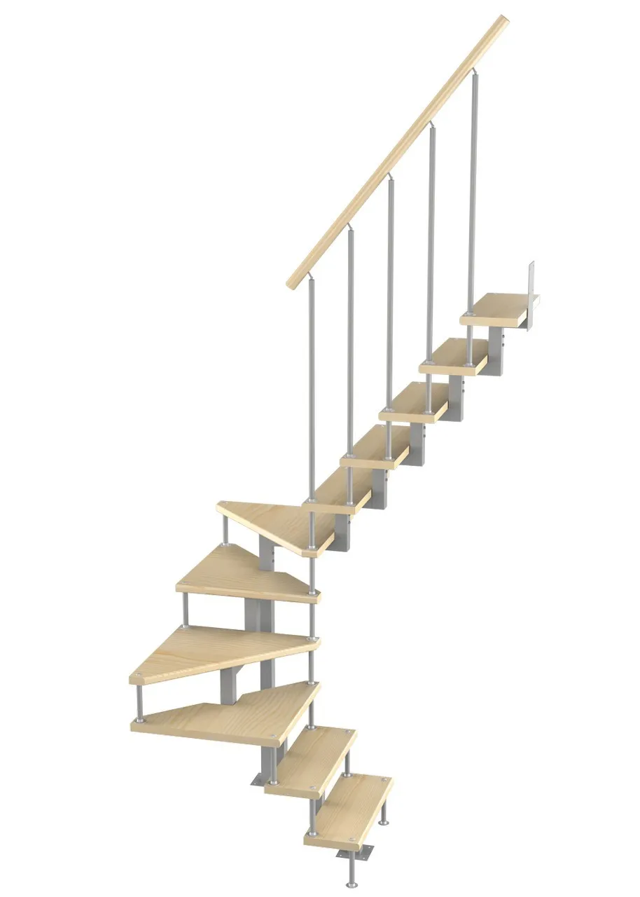 Модульная малогабаритная лестница Компакт 2250-2475, Серый, Сосна, Крашеная, Без Ступений