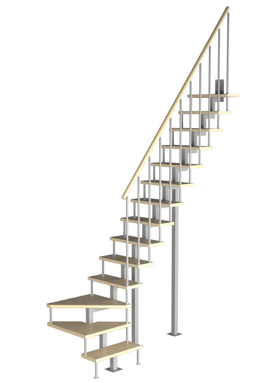 Модульная малогабаритная лестница Компакт 3150-3375, Серый, Сосна, Крашеная