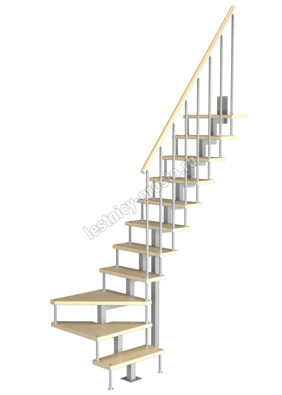 Модульная малогабаритная лестница Компакт 2700-2925, Серый, Сосна, Нержавеющая сталь