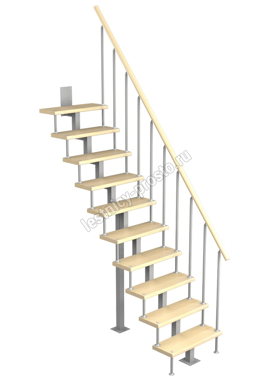 Модульная малогабаритная лестница Линия 2250-2475, Серый, Бук, Нержавеющая сталь