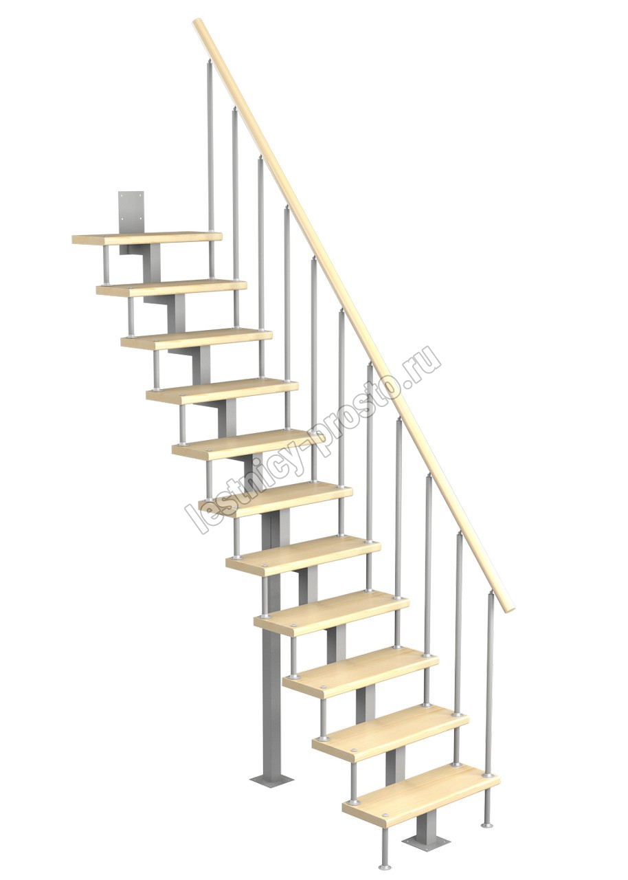 Модульная малогабаритная лестница Линия 2475-2700, Серый, Сосна, Нержавеющая сталь