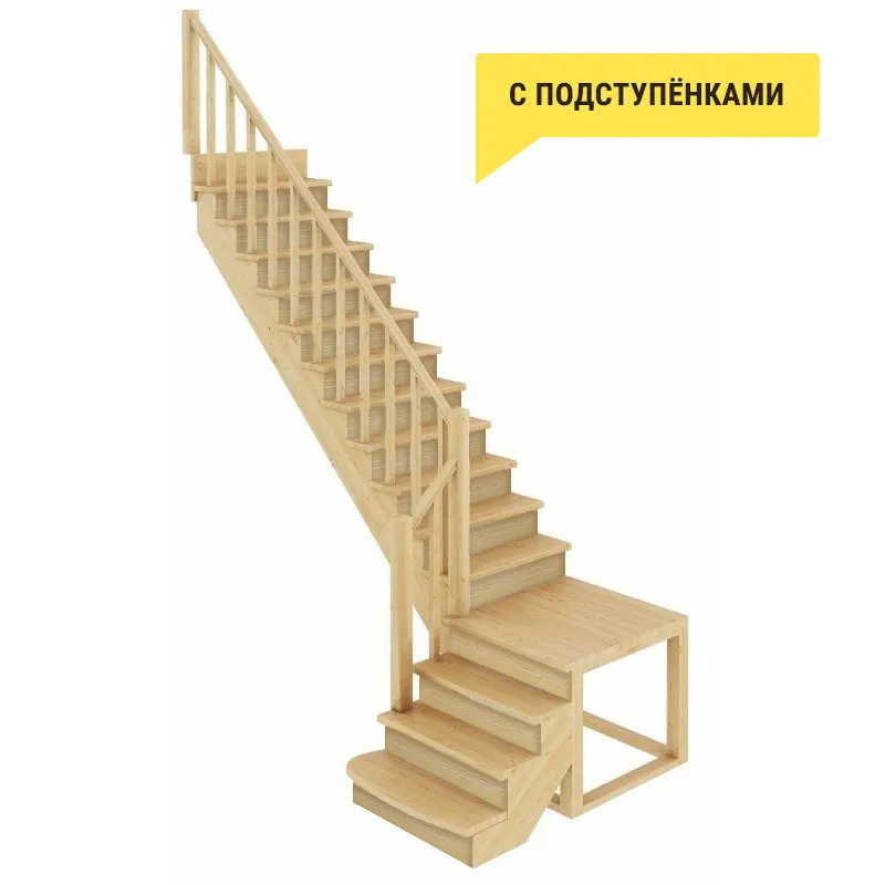 Ступени, пристенной плинтус(сапожок) и поручень выполнены из срощенного дуба категории АВ.