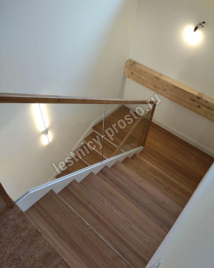 Ступени и поручень выполнены из цельноламельного срощенного дуба категории АВ.