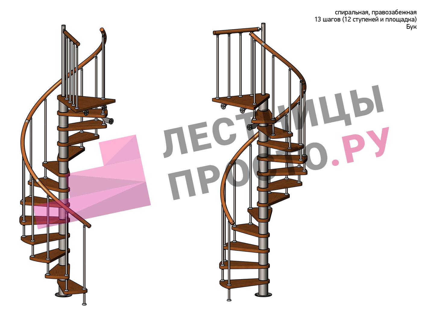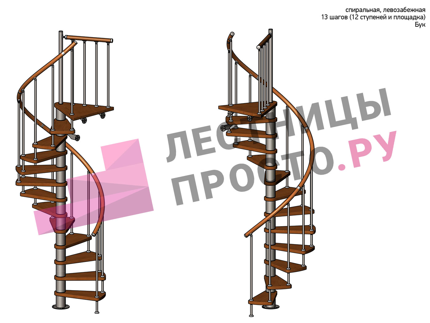 Винтовая лестница Prosto Spiral Black D120см, h282.2-326,3 см, бук