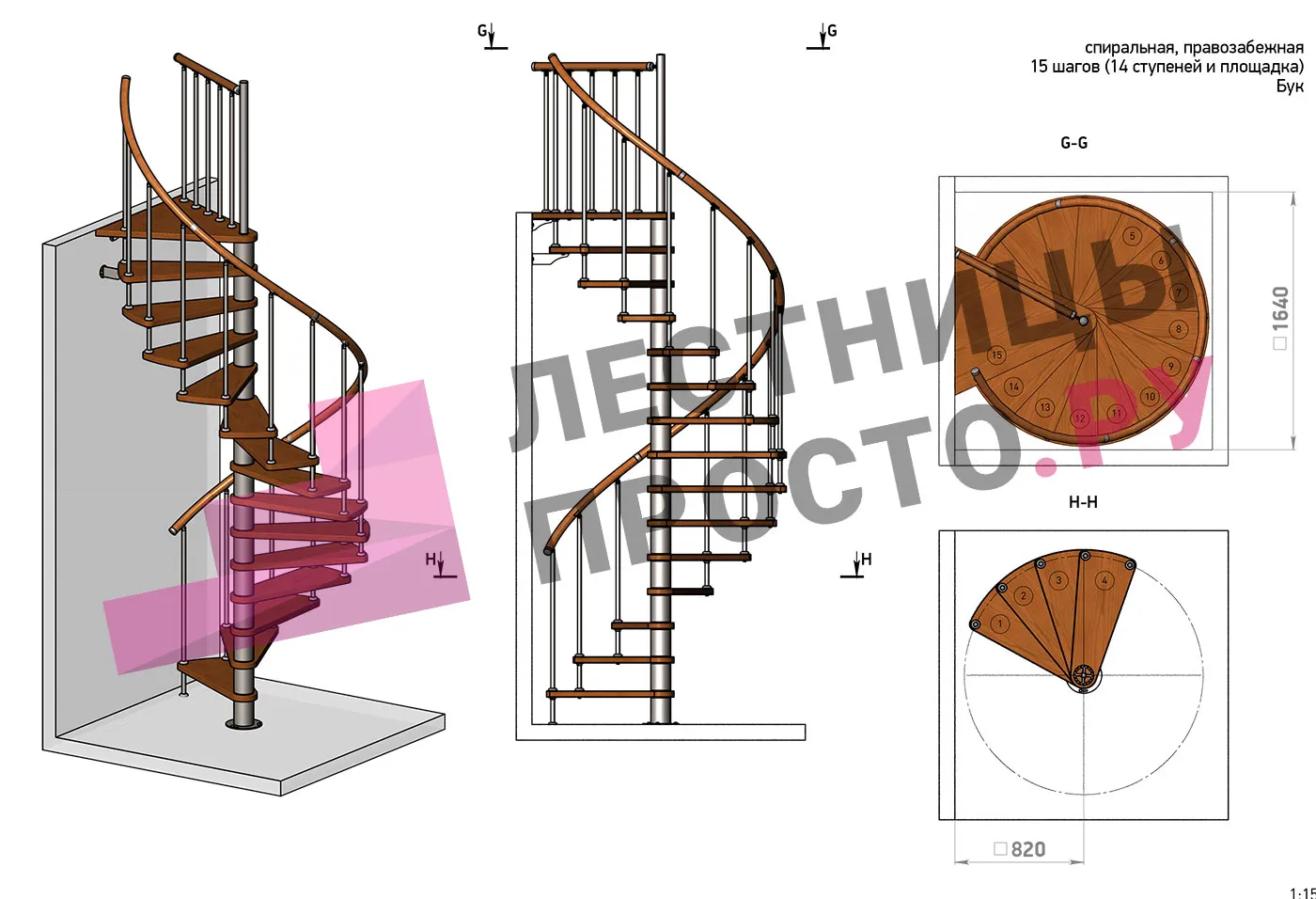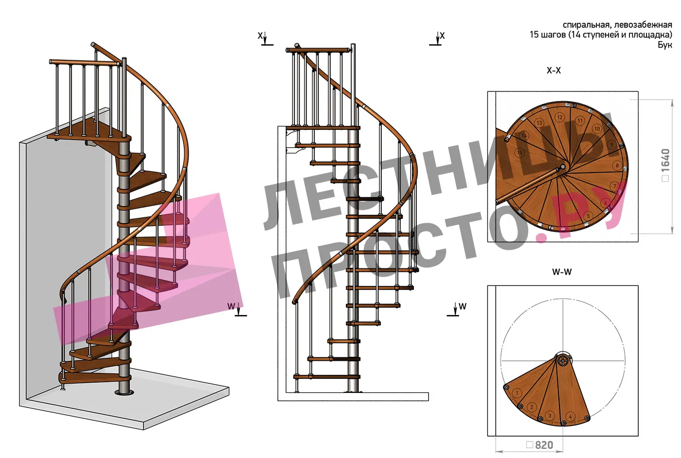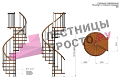 Винтовая лестница Prosto Spiral Black D160см, h325.7-369.8 см, бук