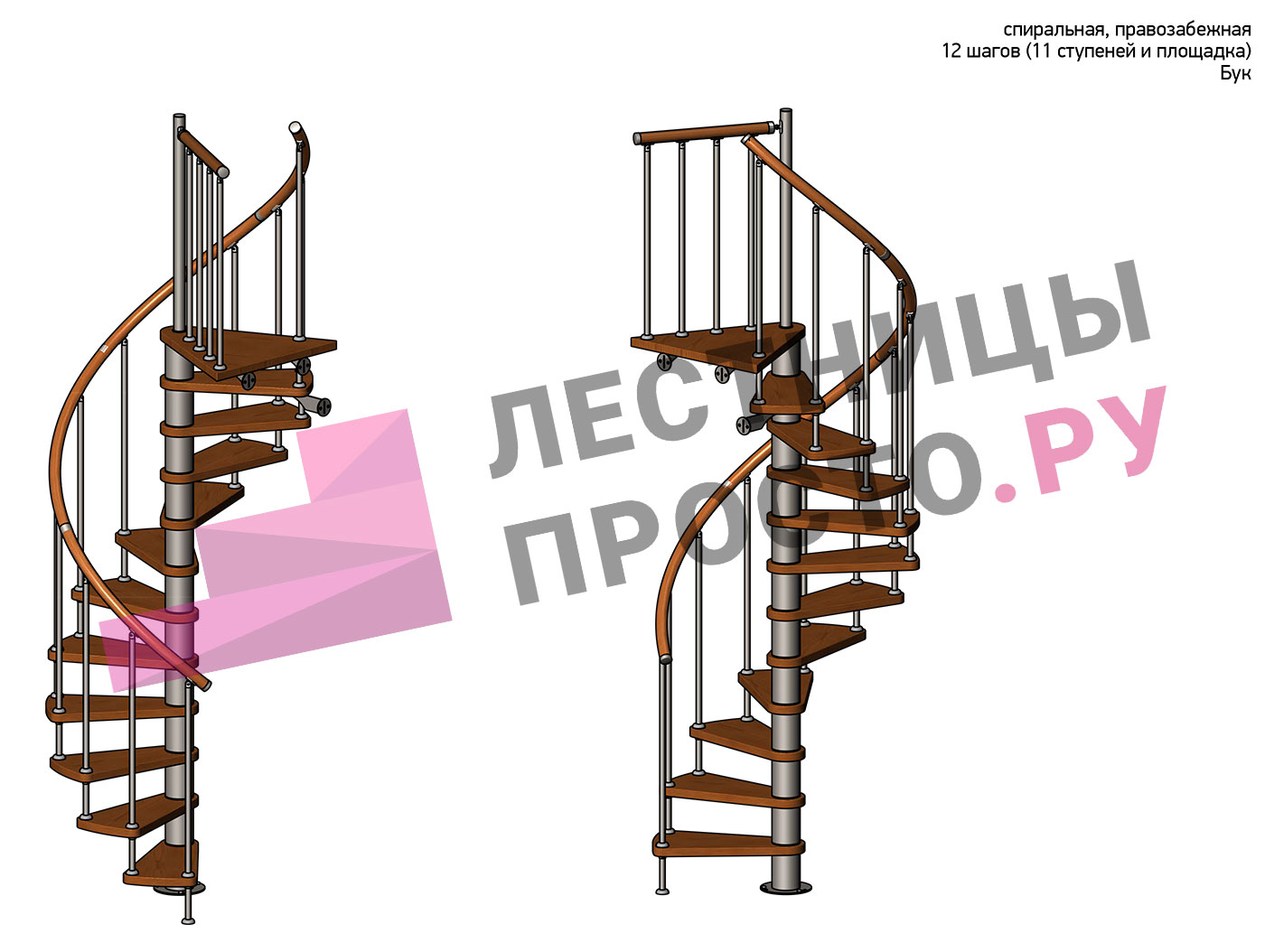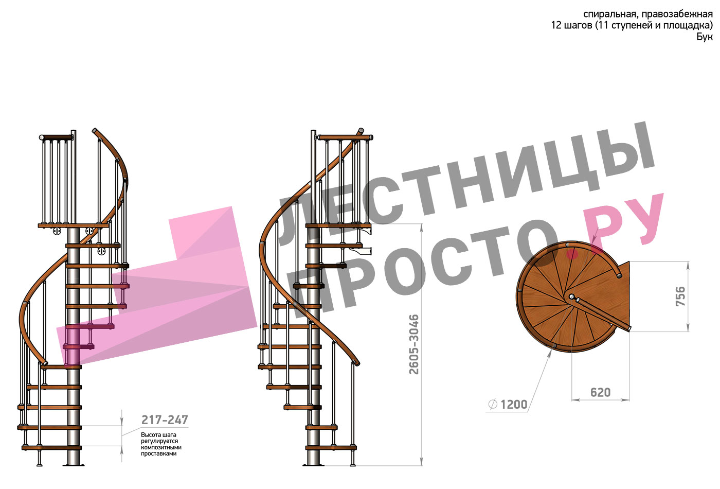 Винтовая лестница Prosto Spiral White D120см, h260.5-304.6 см, бук