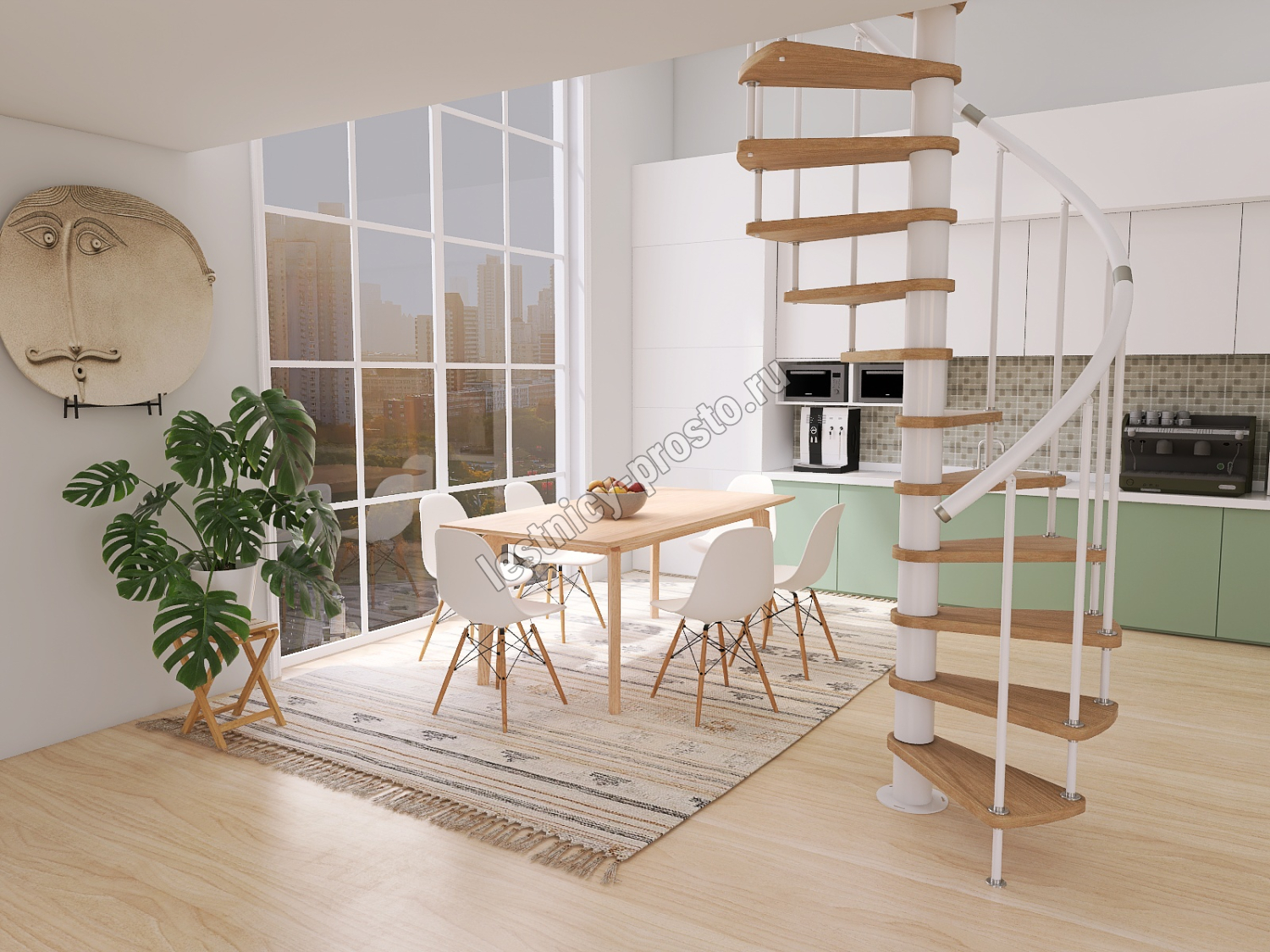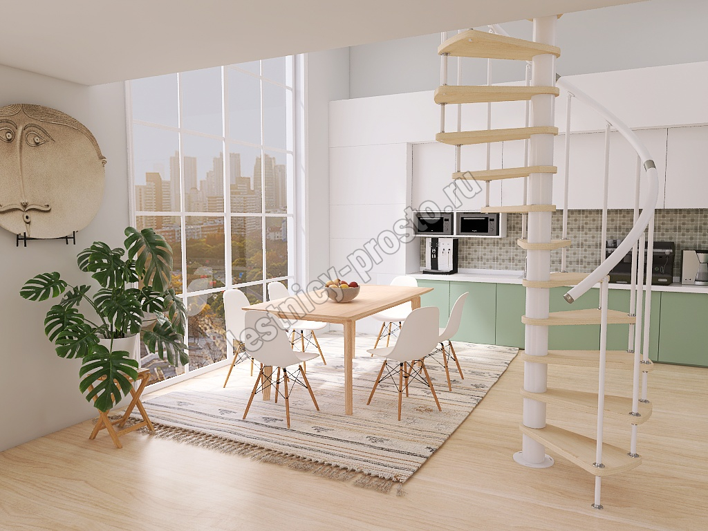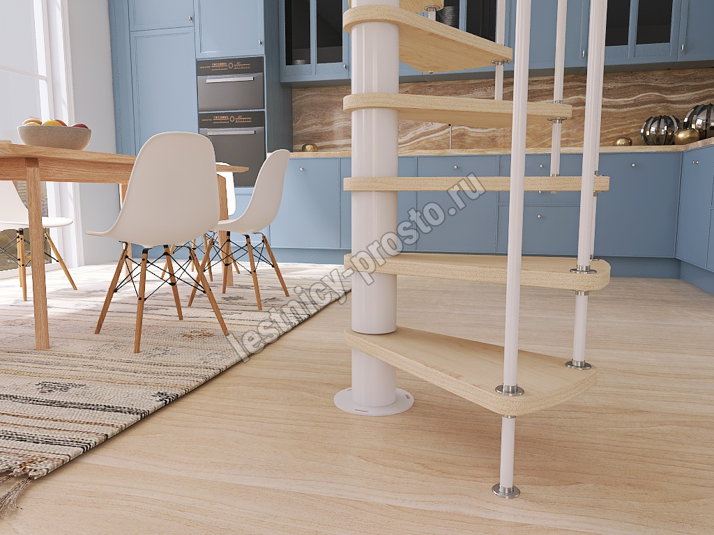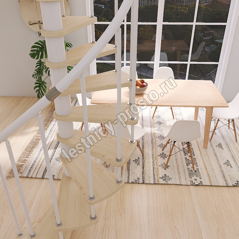 Винтовая лестница Prosto Spiral White D140см, h282.2-326,3 см, бук
