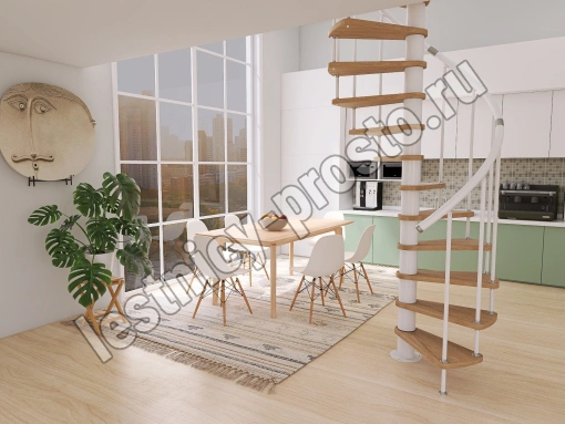 Винтовая лестница Prosto Spiral White D140см, h325.7-369.8 см, бук