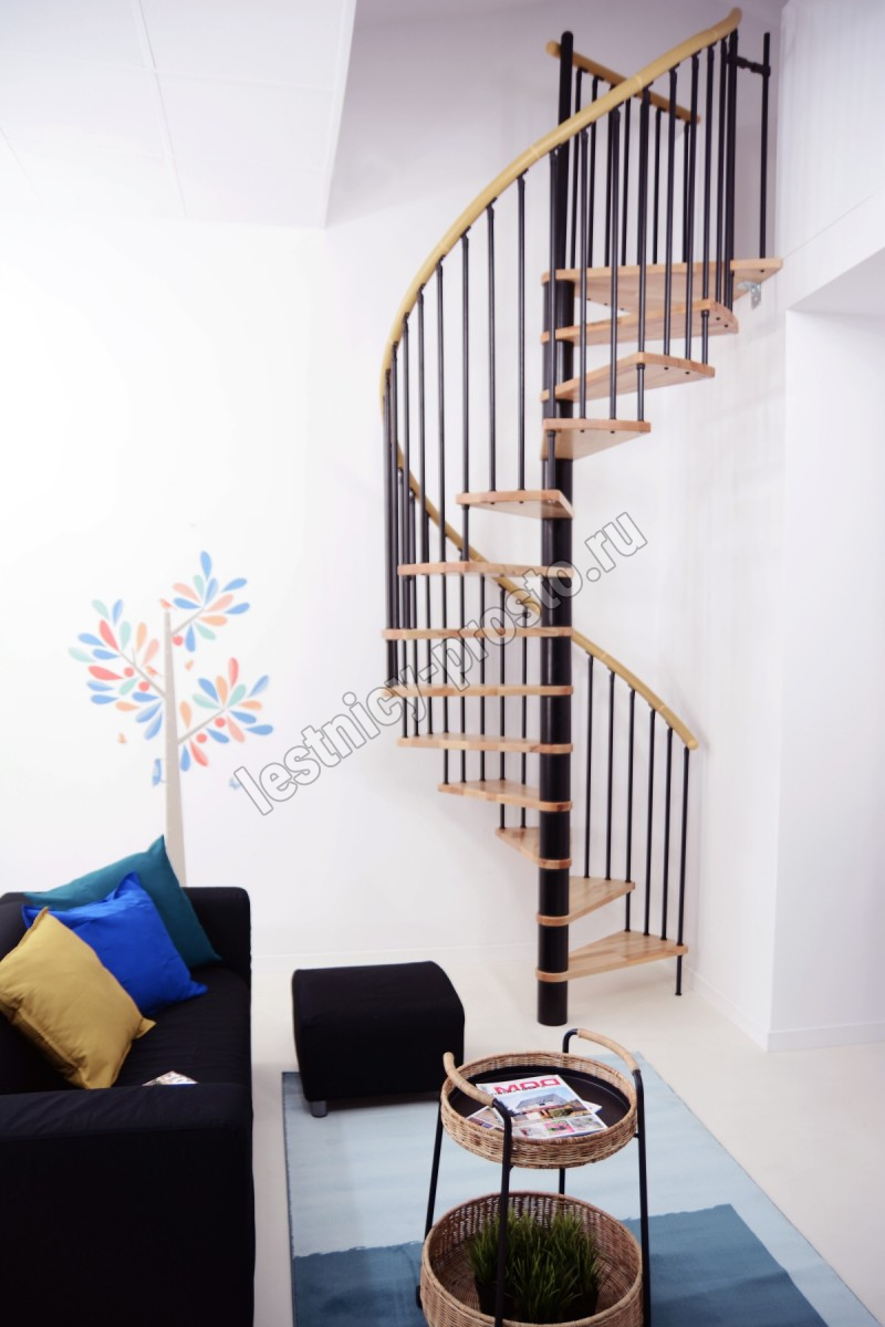 Лестница представлена в двух вариантах: с поворотом направо и с поворотом налево. Благодаря возможности регулировать высоту шага с помощью пластиковых вставок (входят в базовый комплект), высоту лестницы можно варьировать в пределах от 2860 до 3090 мм. Кроме того, купив дополнительную секцию для этой лестницы, можно поднять высоту до 3320 мм. Поручень изготовлен из массива бука в тон ступеням. Ступени и поручень покрыты износостойким защитным лаком.